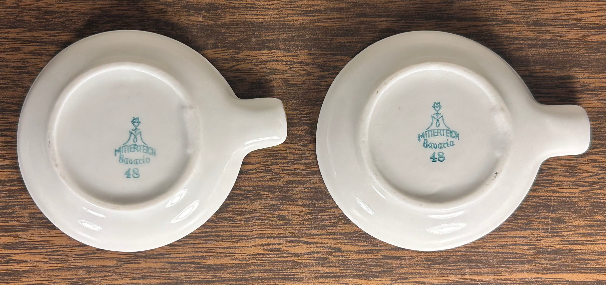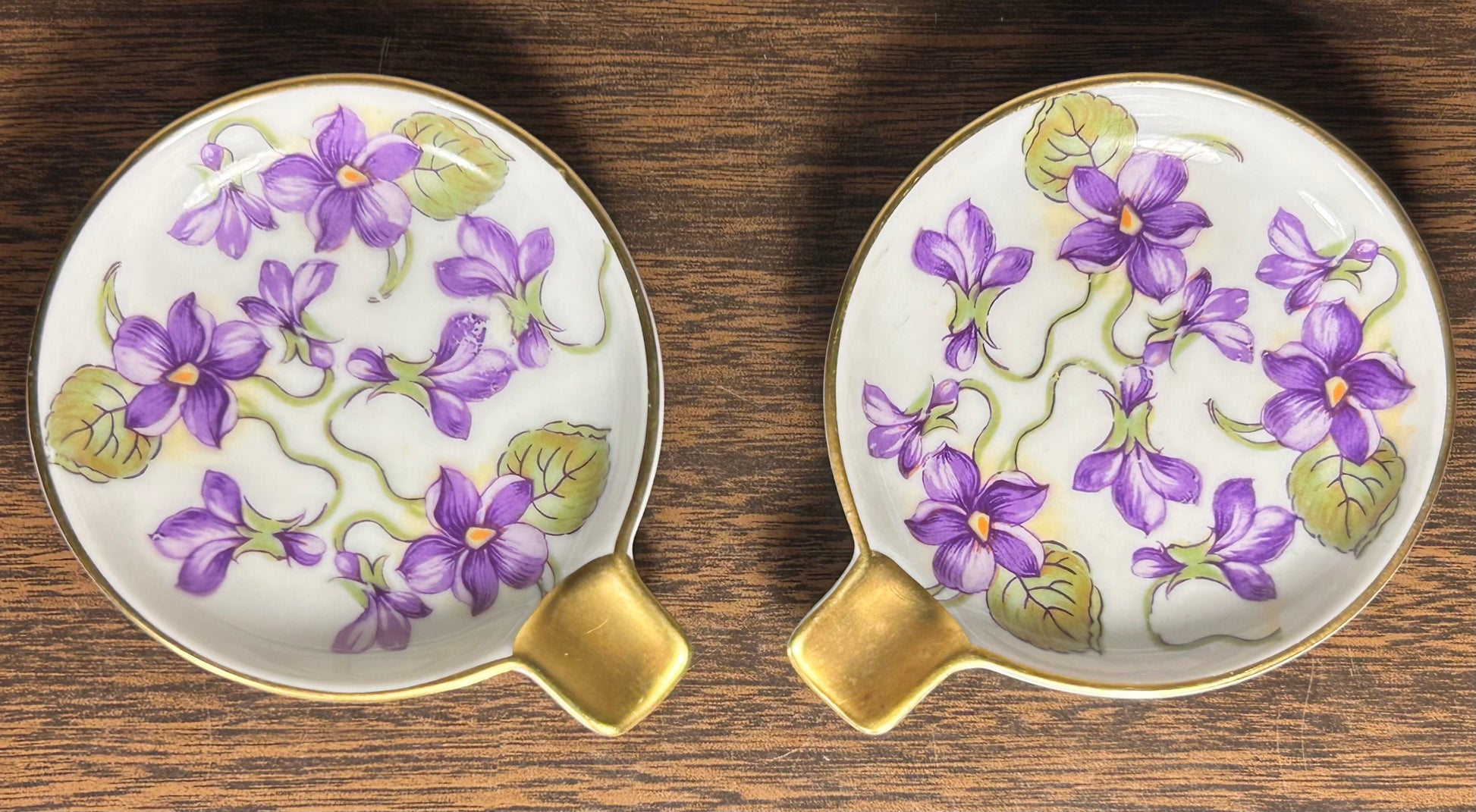 Pair of 1940’s German Mitterteich Bavaria Porcelain Gilded Violet Flower Motifs Personal Ashtrays