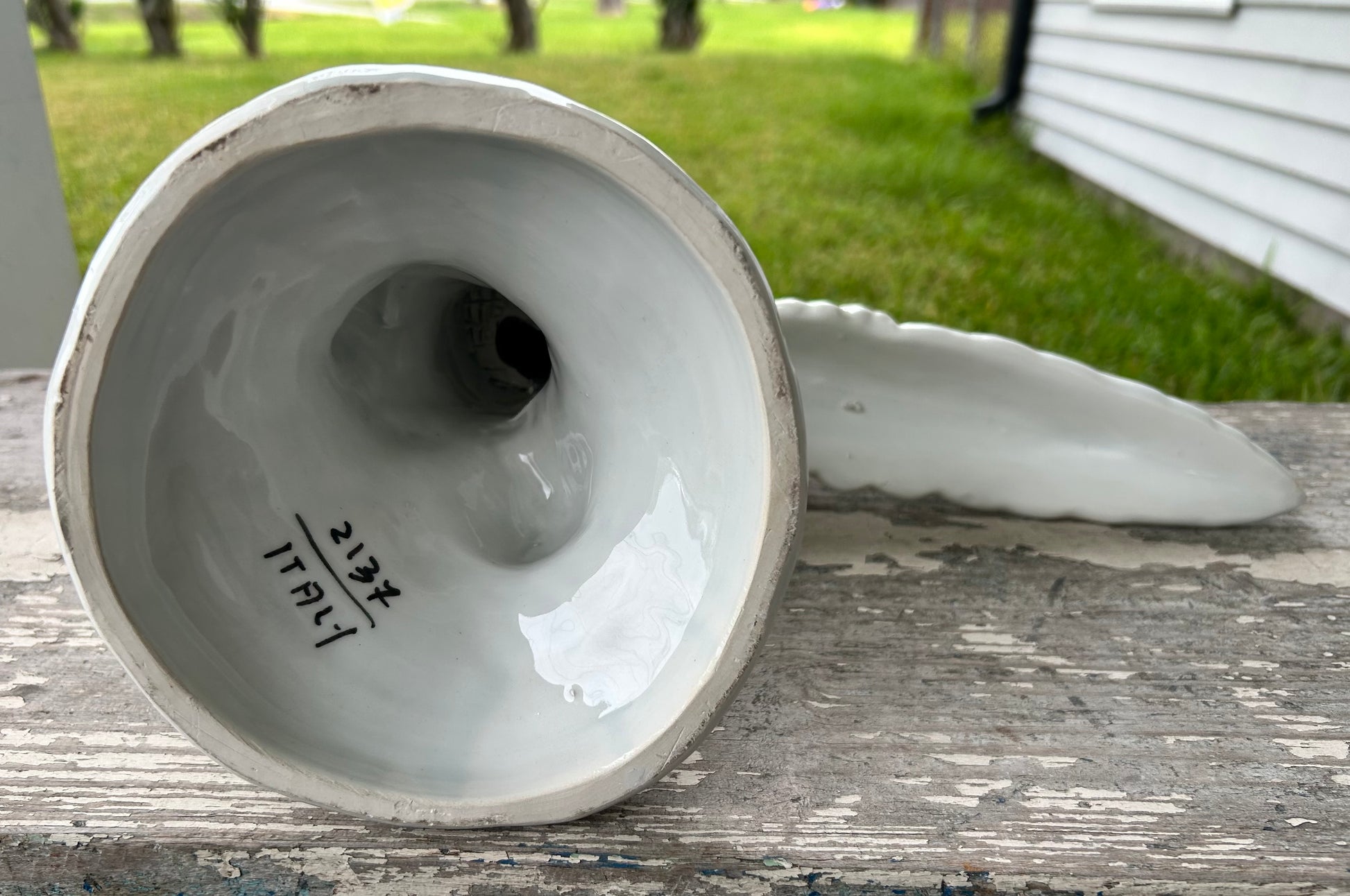 Up for sale is a Pair of Vintage Circa 1960 Italian Mid Century Modern White Ceramic Pheasant Sculptures! The one pictured on the left measures 15 3/8” tall and 15” long. The one pictured on the right measures 16 1/4” tall and 14” long. The pair is in excellent overall condition with minor signs of wear consistent with its age and use. Please message us if you have any questions. Thanks!