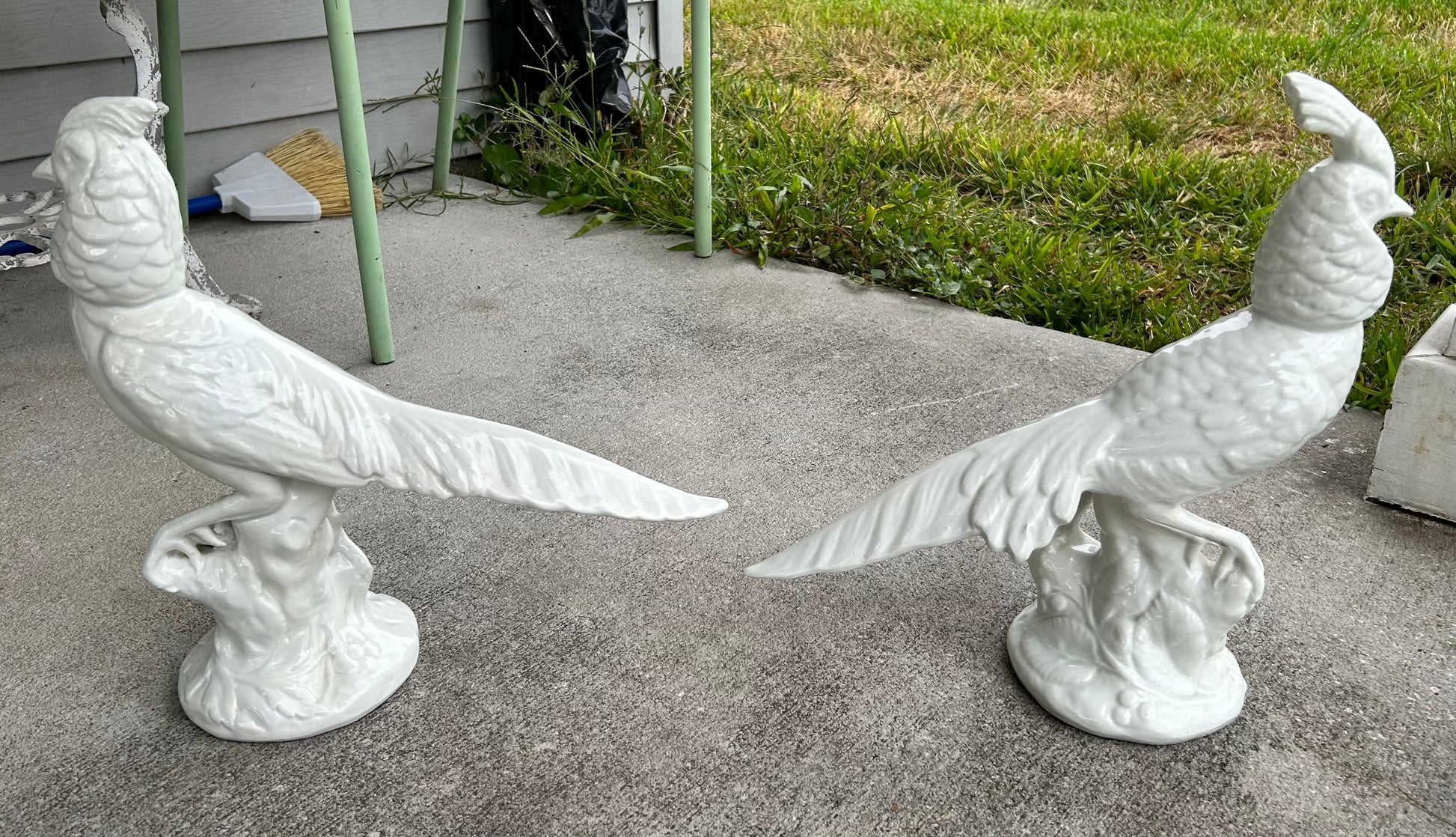 Pair of Vintage Circa 1960 Italian Mid Century Modern White Ceramic Pheasant Sculptures