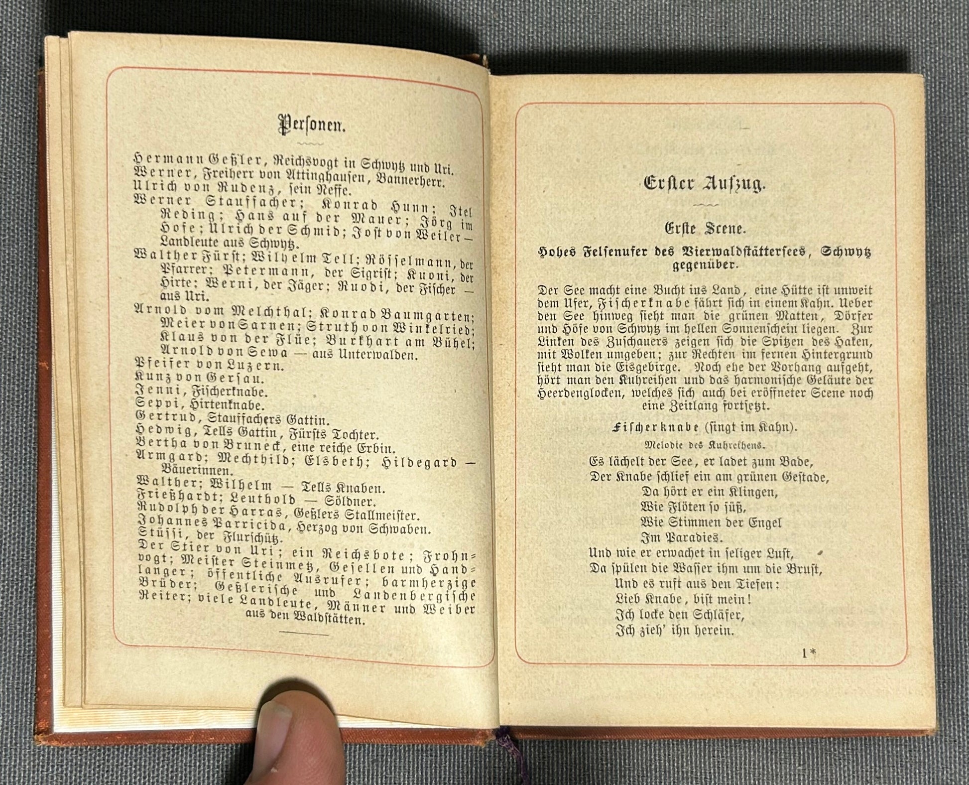 1873 “William Tell” by Schauspiel von Schiller Miniature Hardcover Book Printed in Berlin, Germany