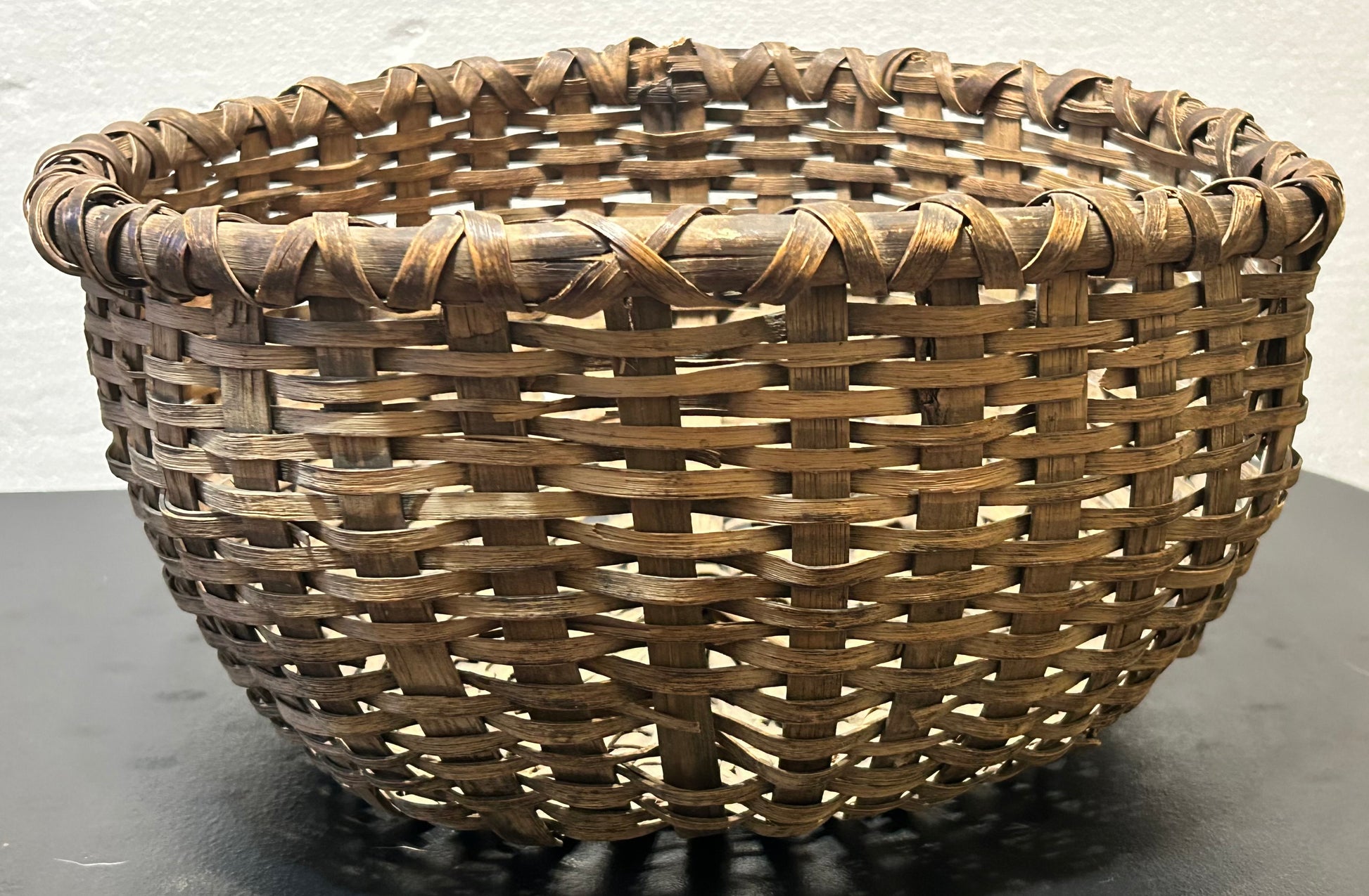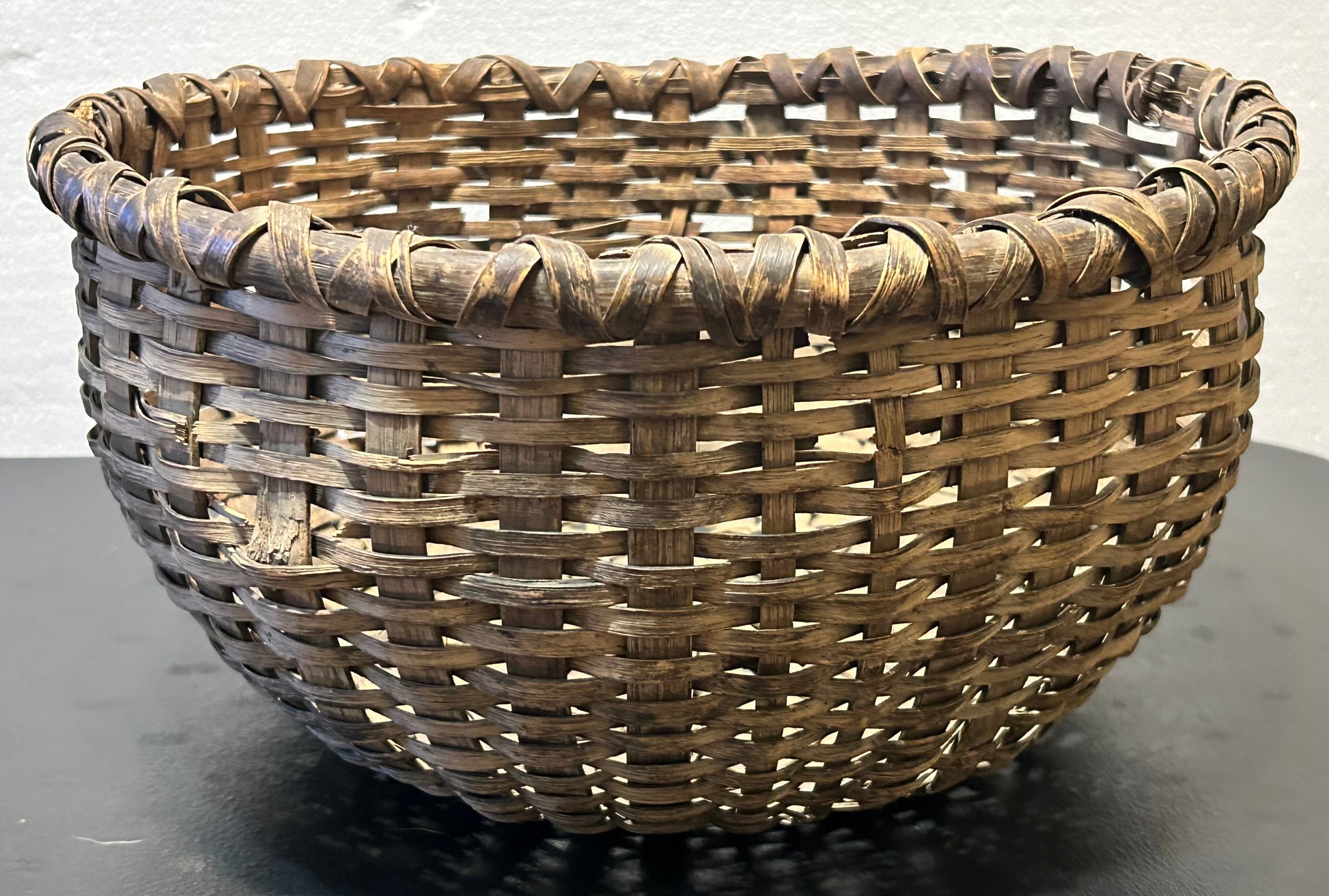 Late 19th Century American Primitive White Oak Splint Wooden Round Basket (Shenandoah Valley Area)
