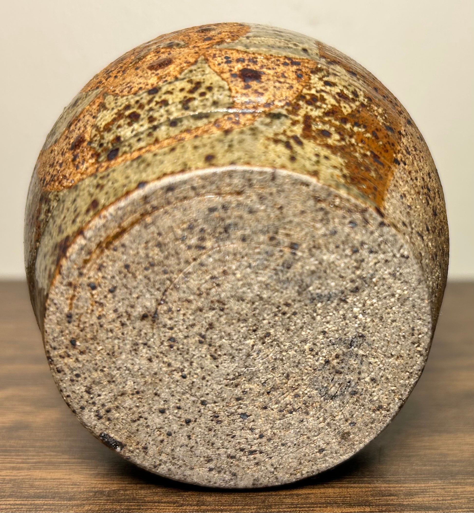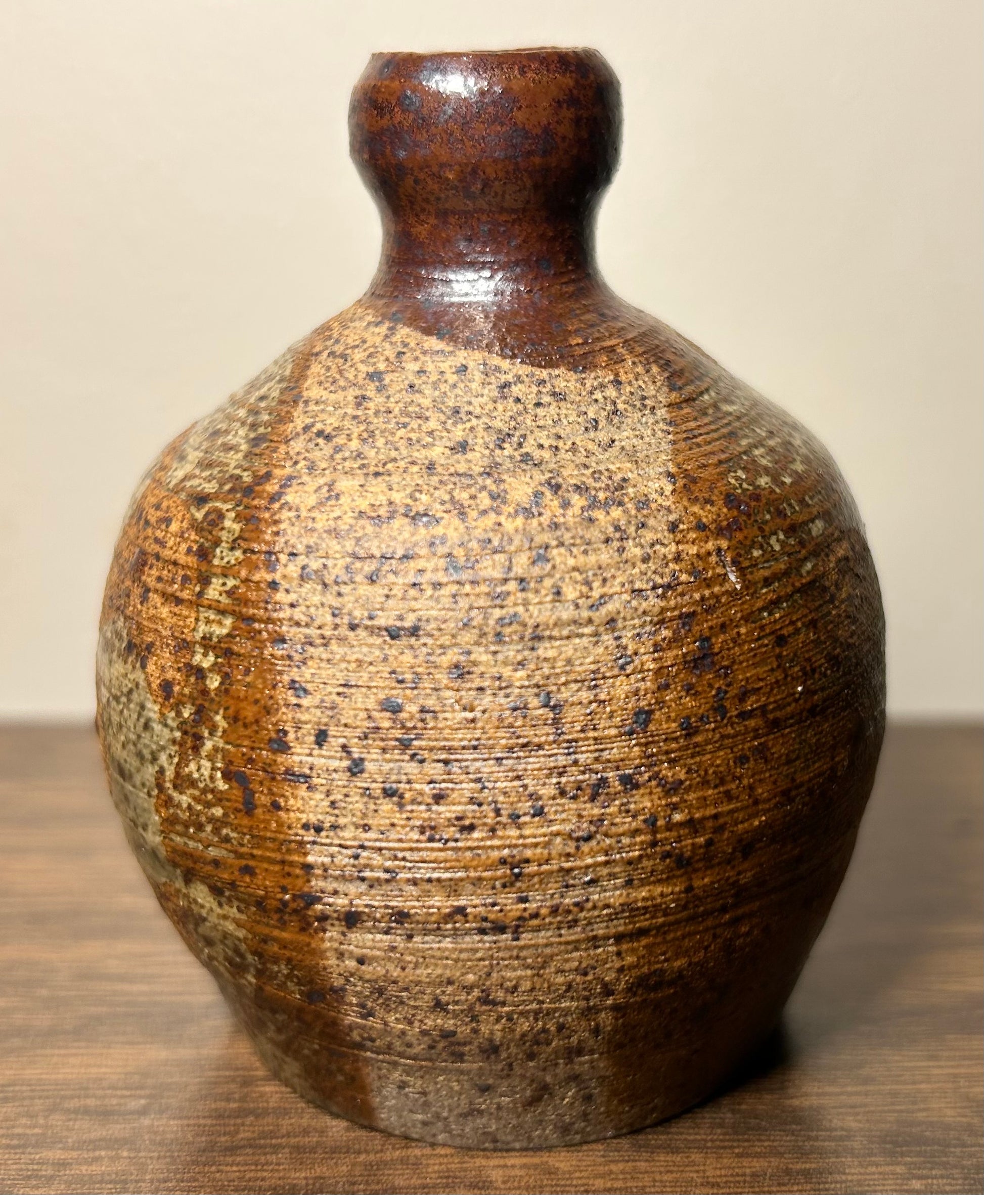 Experience the beauty of Japanese craftsmanship with this Vintage Circa Mid 20th Century Bizen Ware Pottery Weed Pot Vessel. This exquisite piece features delicate floral motifs and a goma style ash glaze, creating a unique and organic form. Perfect as a small accent decor piece, it adds a touch of elegance to any space.