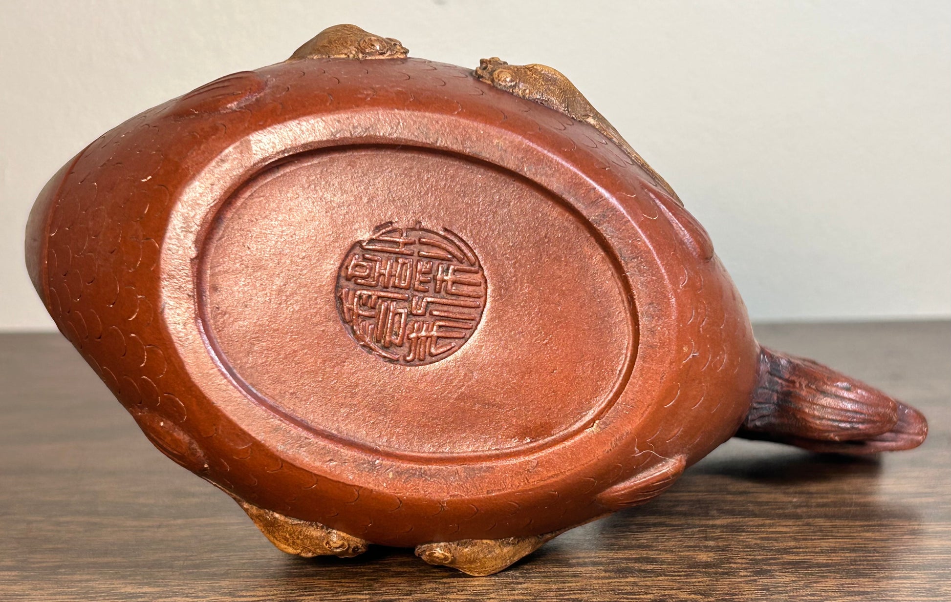 Vintage 1990’s Chinese Yixing Zisha Clay Koi Fish Form Teapot