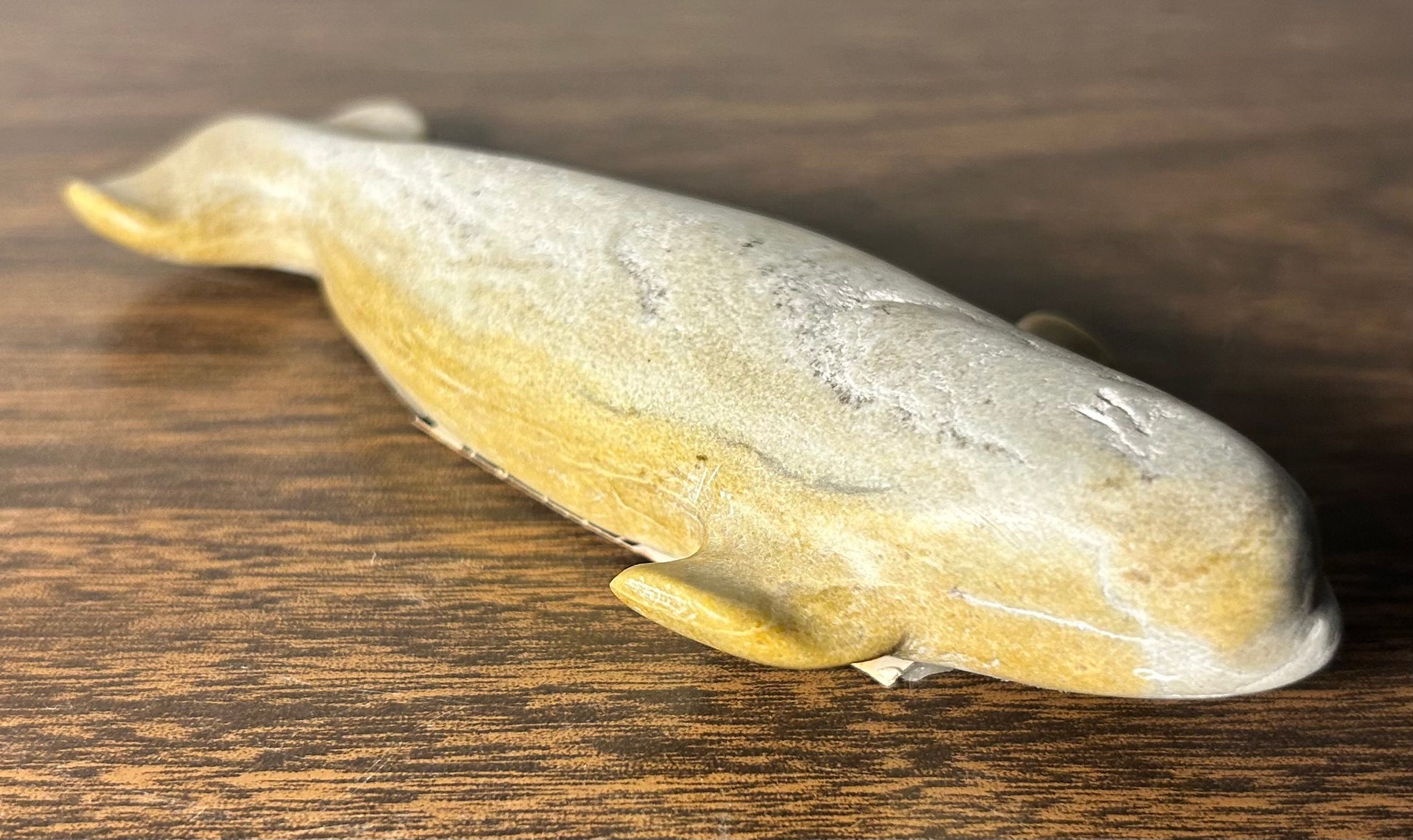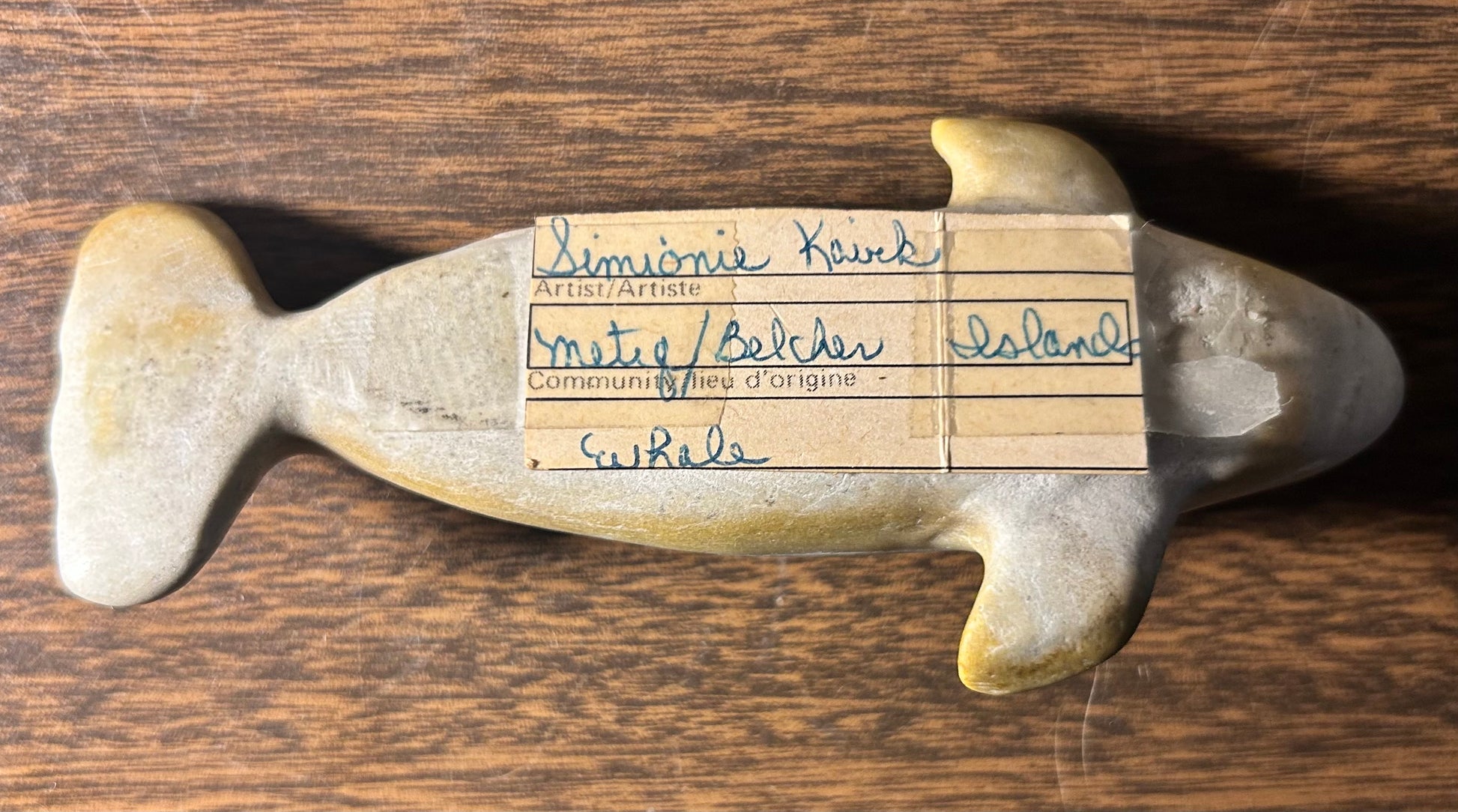 Vintage Canadian Inuit Argillite Stone Whale Carving by Simeonie Kavik (20th Century)