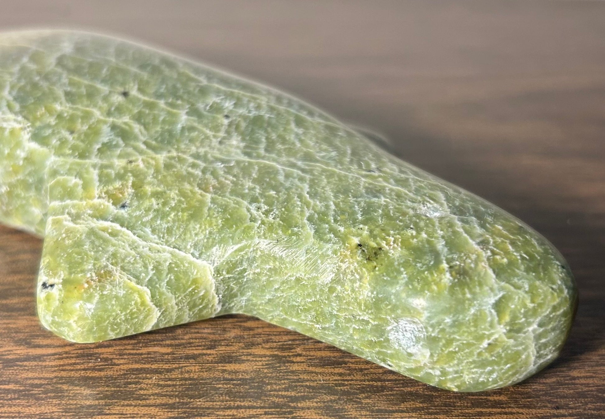 Elevate your home decor with this beautifully crafted Vintage Canadian Inuit Serpentine Stone Whale Carving. Made from serpentine stone, this 20th century piece from Cape Dorset boasts a stunning green hue with white veins running through it. Perfect for admirers of Canadian Inuit art, this carving is a unique and timeless addition to any collection.