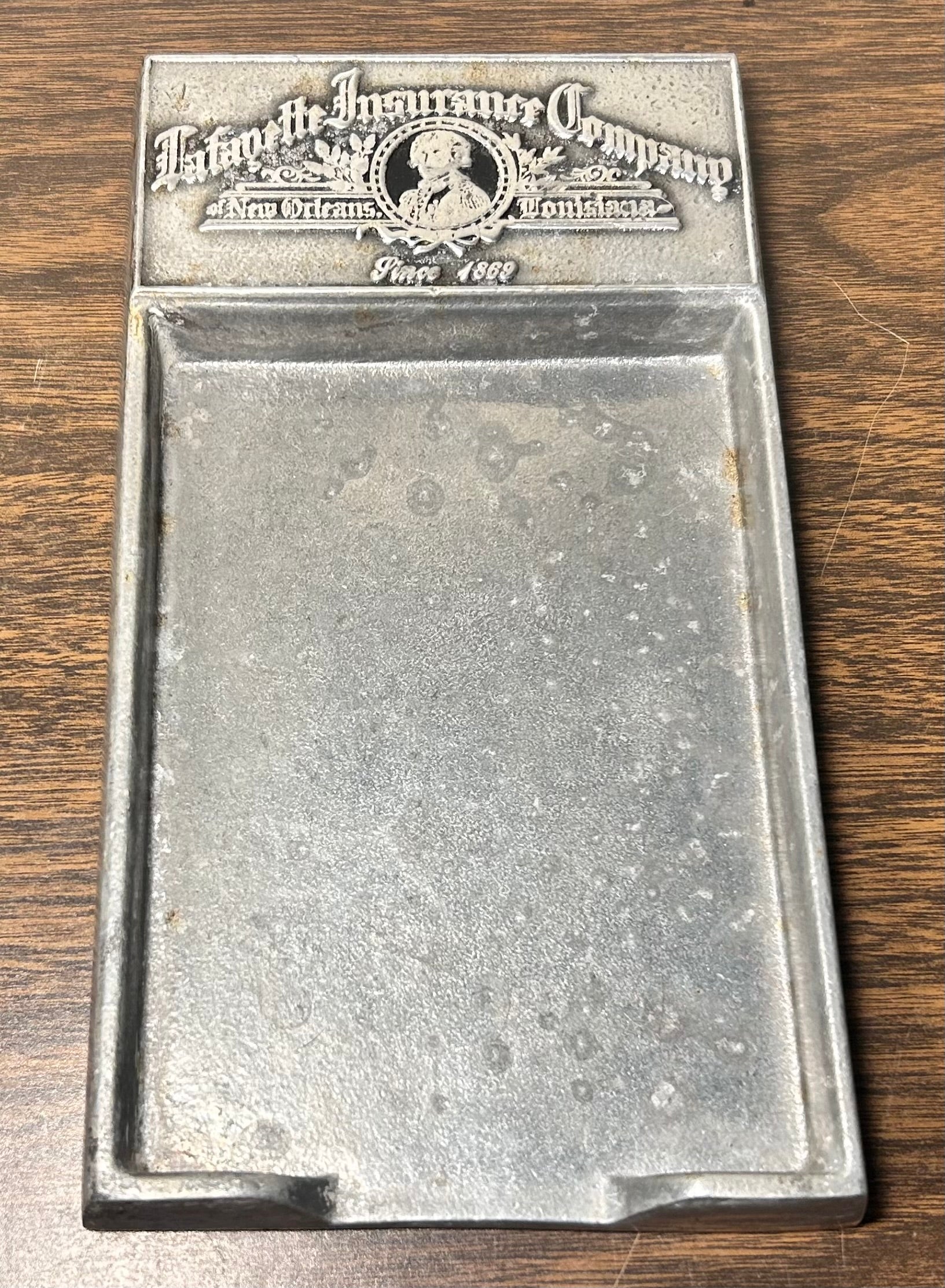 Vintage Mid 20th Century Lafayette Insurance Company New Orleans, Louisiana Pewtarex Metal Receipt Tray